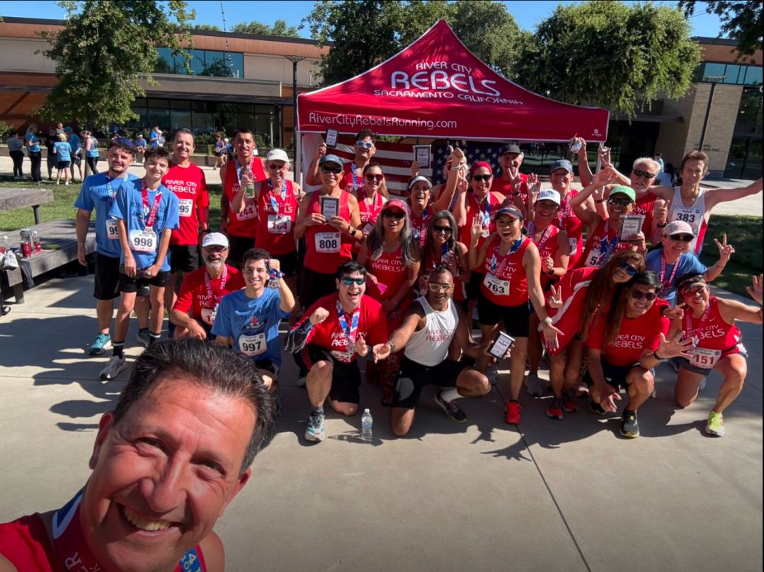 Another home race for the club with so many living in and around the Elk Grove area. The Elk Grove Run4Hunger takes place on July 4th with a quick run around the automall from the Elk Grove aquatic center. Besides the excellent turn out, the club as a whole earned 10 age group podium awards.Also we had Gil Inouye, Michelle Carrasco & Selena Hak were on cheer duty that day, showing the strong support the club has from and for all members. Another very successful day out for the club; great job everyone!