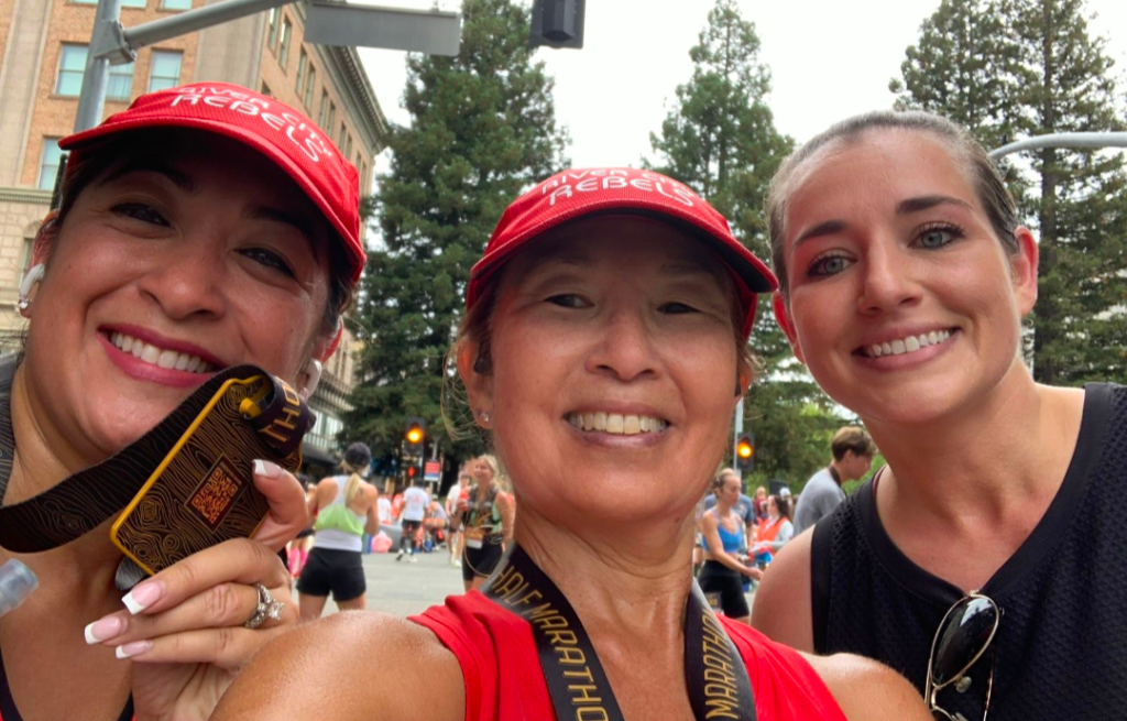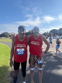 Steph Lunetta-Henry & Selena Hak ran the 5K and Half Marathon (double Barrel challenge) together looking amazing in the new black rebel tank for the 5K and the traditional red rebel racing singlet for the half marathon. Steph completed the 5K in a time of 40:15, with Selena finishing in a time of 39:05. Selena and Steph both completed the half-marathon in a time of 3:17:59. Steph completed a special milestone by running the entire 5K non-stop without stopping or walking. The next day Steph went even further running the first 5 miles of the half marathon without pause. Amazing work Steph your fitness has been growing steadily! Congratulations ladies on completing the Double Barrel Challenge, it is no mean feat!