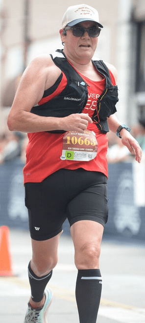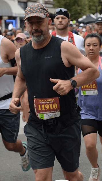Glen Schaezlein coming off the back of a respiratory infection, Glen gritted it out to run the Half Marathon in a time of 2:03:15! Glen gets bonus points for neutralizing a pesky bee at the dinner table the night before; thank you Glen!