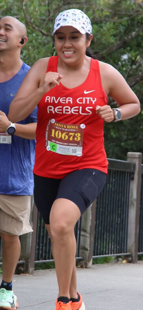 Mimi Macias completed the double barrel challenge running the 5K and Half Marathon to times of 38:45 and 2:45:08. Great job Mimi you completed the challenge with gusto; congrats!