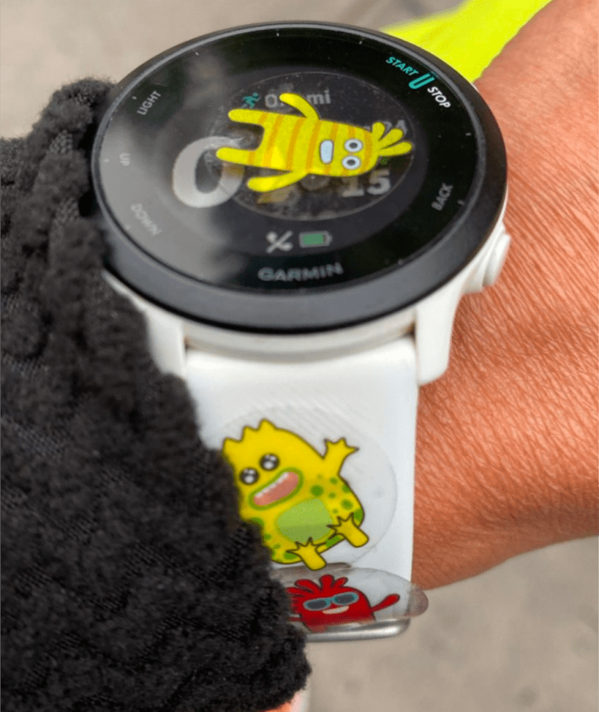 Jasmin McClean dusted the Half Marathon in a time of 2:07:04, what an excellent way to celebrate your 50th birthday Jasmin; congrats and happy Birthday! Jasmin’s son also helped spruce up Jasmin’s garmin watch with some very aesthetic stickers.