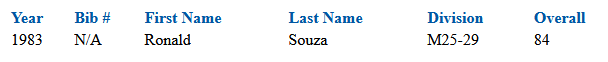 Fun fact our very own Ron Souza ran the first CIM in 1983 with a time of 2:39!