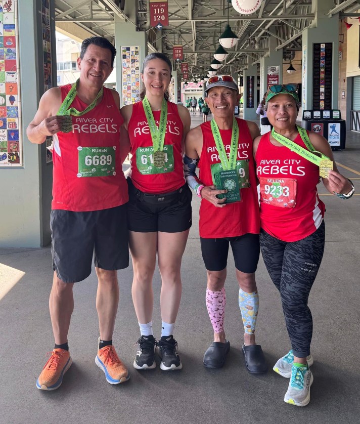 Stock items include our club Racing Singlets (Red) & the Tech Training T Shirts, in red or black, all available in men’s and women’s sizes. You can also show your support in custom Rebels logo gear.