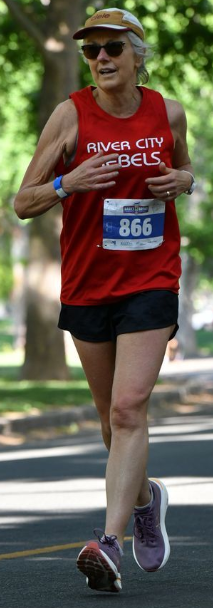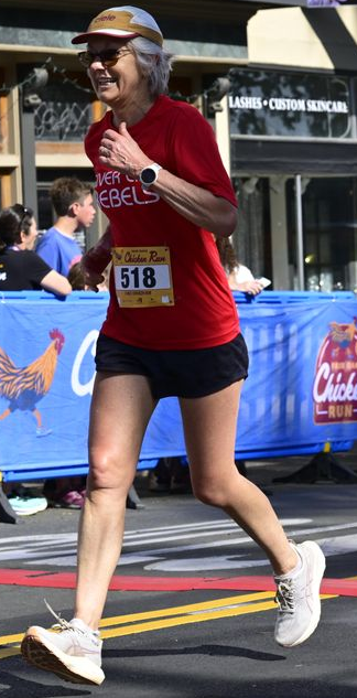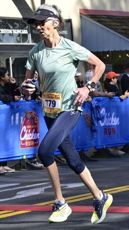 Ellen Raco blitzed the 5K with a time of 24:40; earning 1st place in her age group (60-69); your hard speed work with your husband at Folsom Lake College is paying off; great job!