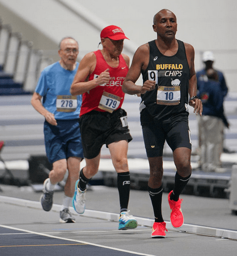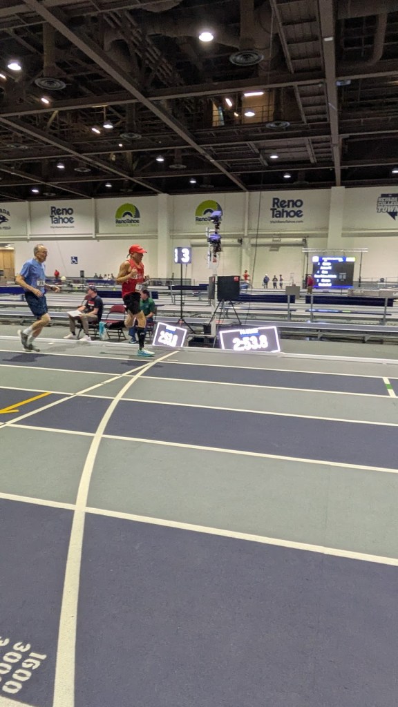Ron Souza ran the indoor mile to a time of 7:40 with an excellent kick at the end; well done Ron!