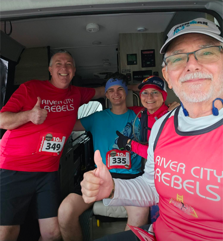 The 60 and 70 age group teams ran the 8K course with Mike Tiska running the 10K course.