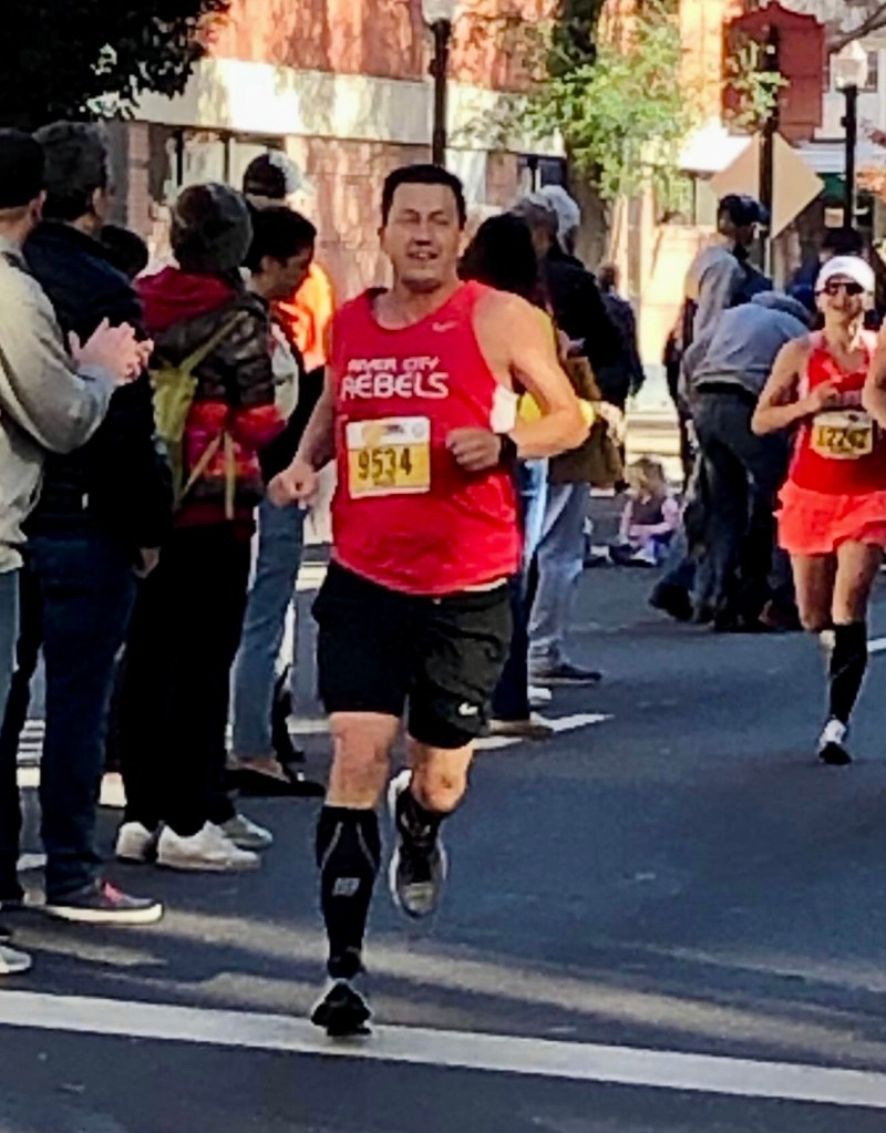 If ever the term “run happy” applied to anyone, it would be Ruben. He got into running in elementary school just for fun, encouraged by his teachers. This built his self-esteem and gave him a positive focus, the value of which he passes on to young people today. Ruben ran cross country and track in high school at Delta High in Clarksburg, which he terms, “the first McFarland, USA.” Later on, his friend Ramon Jaime encouraged him to run his first CIM, clocking an impressive PR of 3:05. These days, Ruben’s infectious personality serves the team well, as he has attracted a whole new cadre of Rebels.
