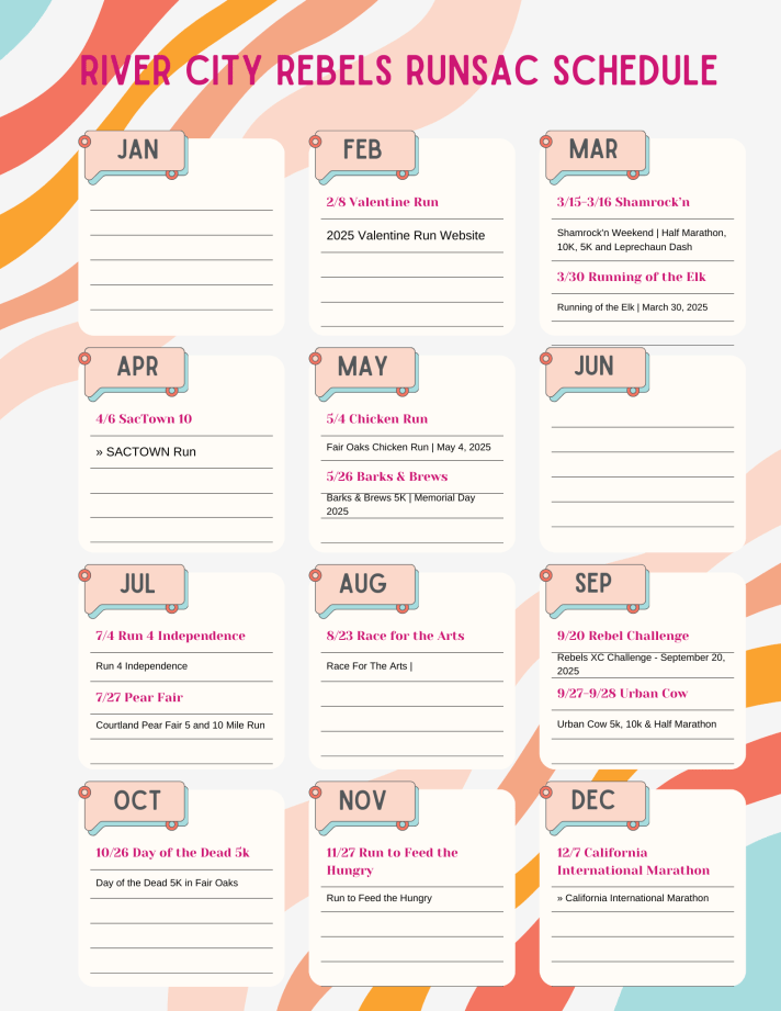 Here’s your chance to win bragging right along with some prestigious awards and amazing prizes. For the 2025 Race Season. The River City Rebels are pleased to announce the first ever River City Rebels RunSac Challenge. If you remember the Buzz Oates RunSac Race Series you will be very familiar with how this works.